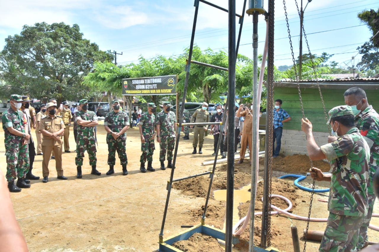 Mengingat pentingnya kebutuhan air melalui serbuan teritorial, saya mencanangkan untuk membuat Sumur Bor Air Bersih bagi Prajurit dan masyarakat sekitar yang membutuhkan di wilayah Kodim 0211/TT rencananya akan dibuat 50 Unit Sumur Bor.