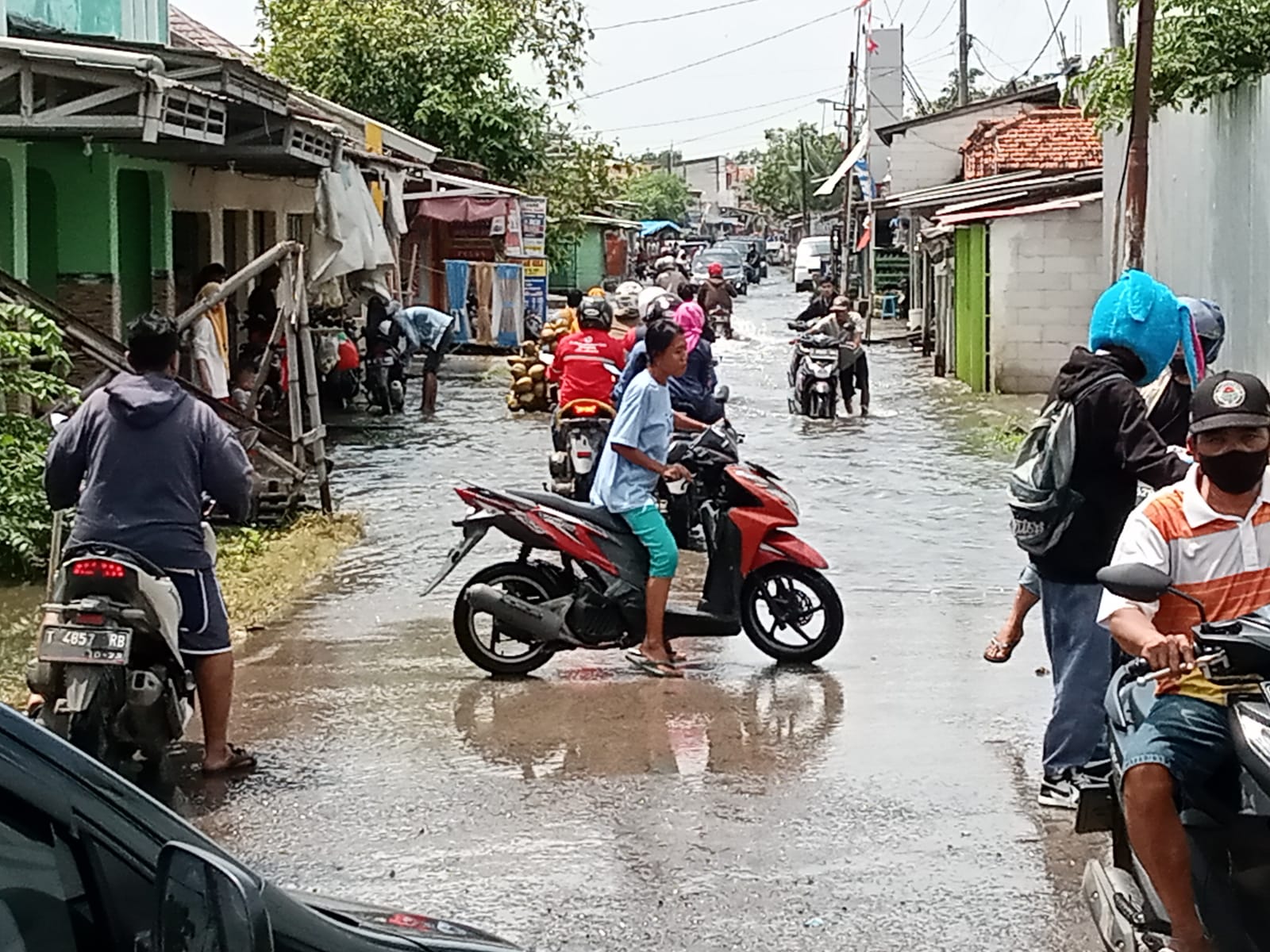 “Ini perlu kami lakukan mengingat jalan ini merupakan salah satu jalan alternatif bagi pengguna jalan terutama para pengendara roda dua maupun roda empat baik yang menuju maupun kembali dari aktifitas, jadi dengan di buangnya air ke saluran irigasi minimal dapat dilalui kembali. karena kasihan kan kendaraan mereka banyak yang mati akibat terendam air, disamping itu juga ada sebagian rumah warga yang terendam jadi dengan dilakukan pemompaan ini minimal dapat mengurangi volume air”,Ucapnya