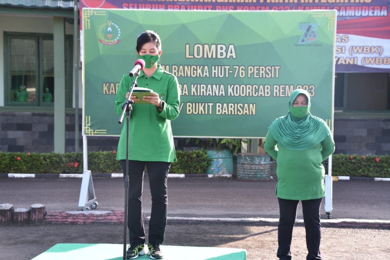 Ketua Persit Koorcabrem 023 PD I/BB Ny Ina Febriel Tikupasang dalam sambutannya mengatakan melalui kegiatan lomba dalam rangka HUT Persit selain untuk kebugaran diharapkan dapat dijadikan sebagai momen silaturahmi diantara anggota Persit karena sudah lama tidak ketemu akibat dari situasi Pandemi Covid 19, dengan harapan tetap mengedepankan Prokes.