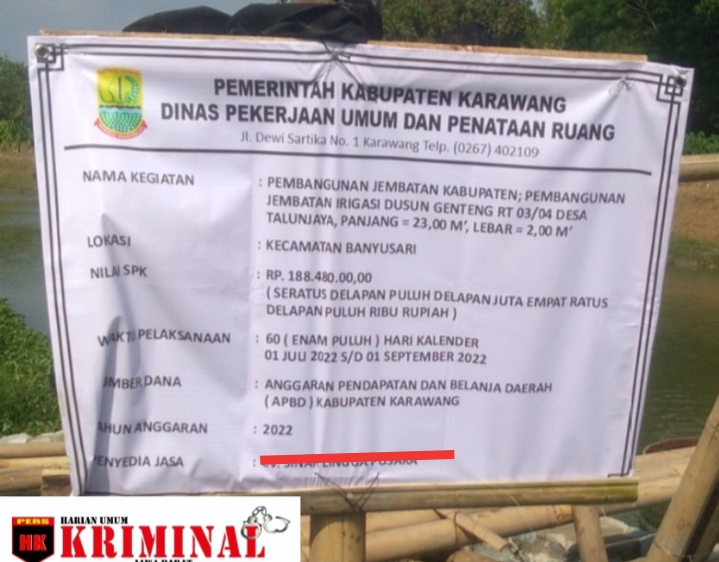 KARAWANG, KRIMINALGROUP.COM – Pengawas Proyek pembangunan jembatan Dusun Genteng RT 01/04 Desa Talunjaya, Kecamatan Banyusari, dari Dinas PUPR Kabupaten Karawang Ujang Suhendi meminta pondasi Jembatan yang baru dibangun agar dibongkar.