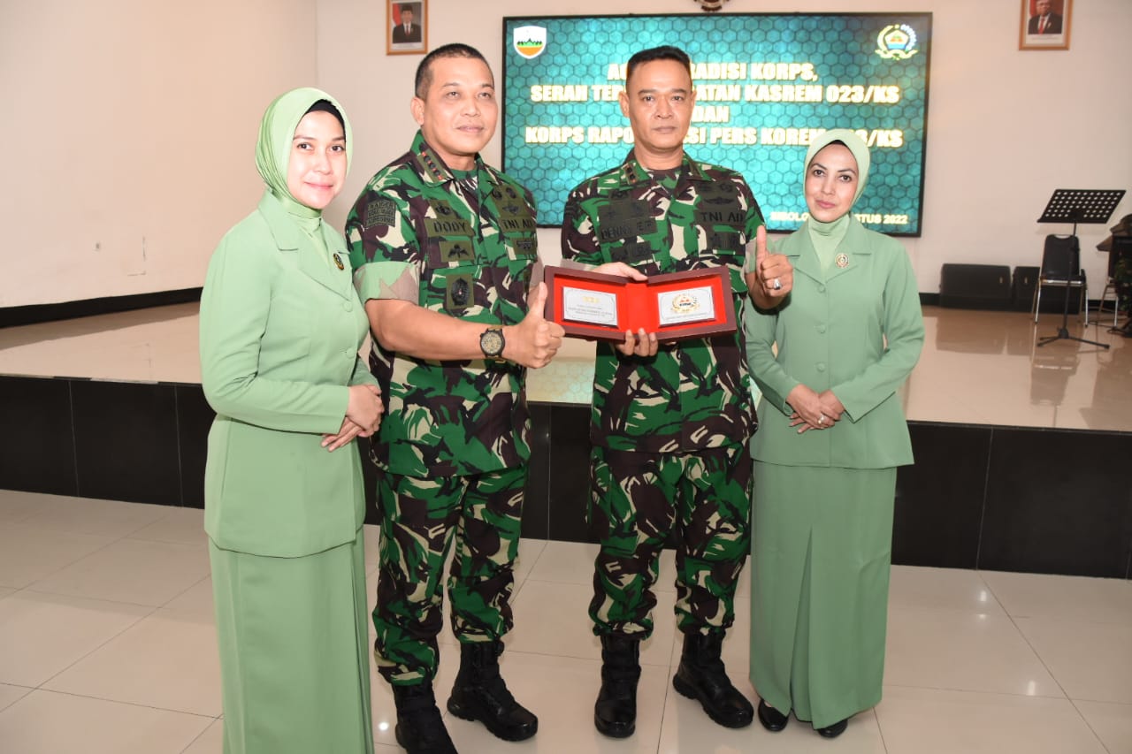 Serah terima jabatan Kasrem023/KS dan Korps Raport Kasipers ditandai dengan penciuman Dhuaja Korem 023/KS penandatanganan Naskah serah terima baik oleh pejabat lama dan pejabat baru serta penandatanganan Pakta Intregritas.