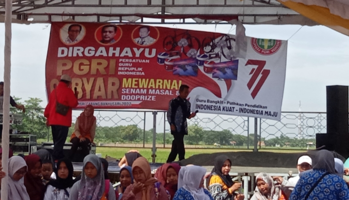 Ketua PGRI Banyusari, Ujang Ahmad,.S.Pd memberikan apresiasi atas pelaksanaan kegiatan tersebut. Giat yang dikerjasamakan dengan siswa/i Paud dan sekolah dasar mengusung tema “Melalui Kreatifitas Anak, Kita Bangkit, Pulihkan dan Songsong Indonesia Maju”.