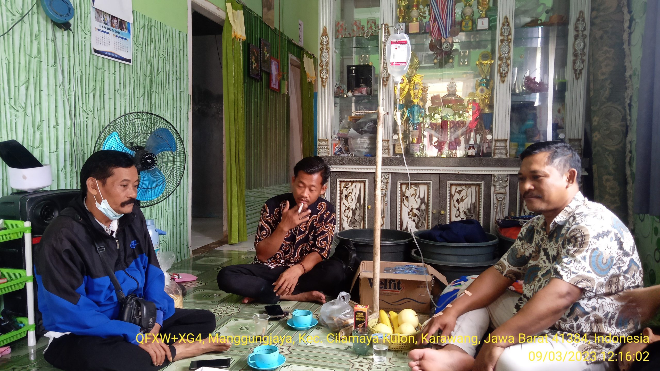 KARAWANG II Wartawan Karawang Duduy Suryana, Sulaeman, dan juga yang lain menyempatkan waktunya untuk menjenguk ketua PKBM Bina Bangsa Desa Manggungjaya, Kecamatan Cilamaya Kulon, Kabupaten Karawang Asan Suhendi, SE alias Jepo hampir tiga hari terbaring sakit dirumahnya akibat yang dideritanya penyakit lambung dan tives. Kedatangan mereka sengaja untuk menengok ketua PKBM Bina Bangsa yang juga menjabat sebagai Sekdes Manggungjaya sedang sakit, bahkan saat itu pun dalam kondisi diinfus.