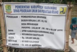Bahkan, selain itu proyek tersebut tidak mencantumkan nomor SPK, yang tertuang didalam papan informasi proyek, tidak seperti papan informasi proyek lainnya. Dalam papan proyek tercantum nominal anggaran Rp.189.897.000 APBD II Karawang.