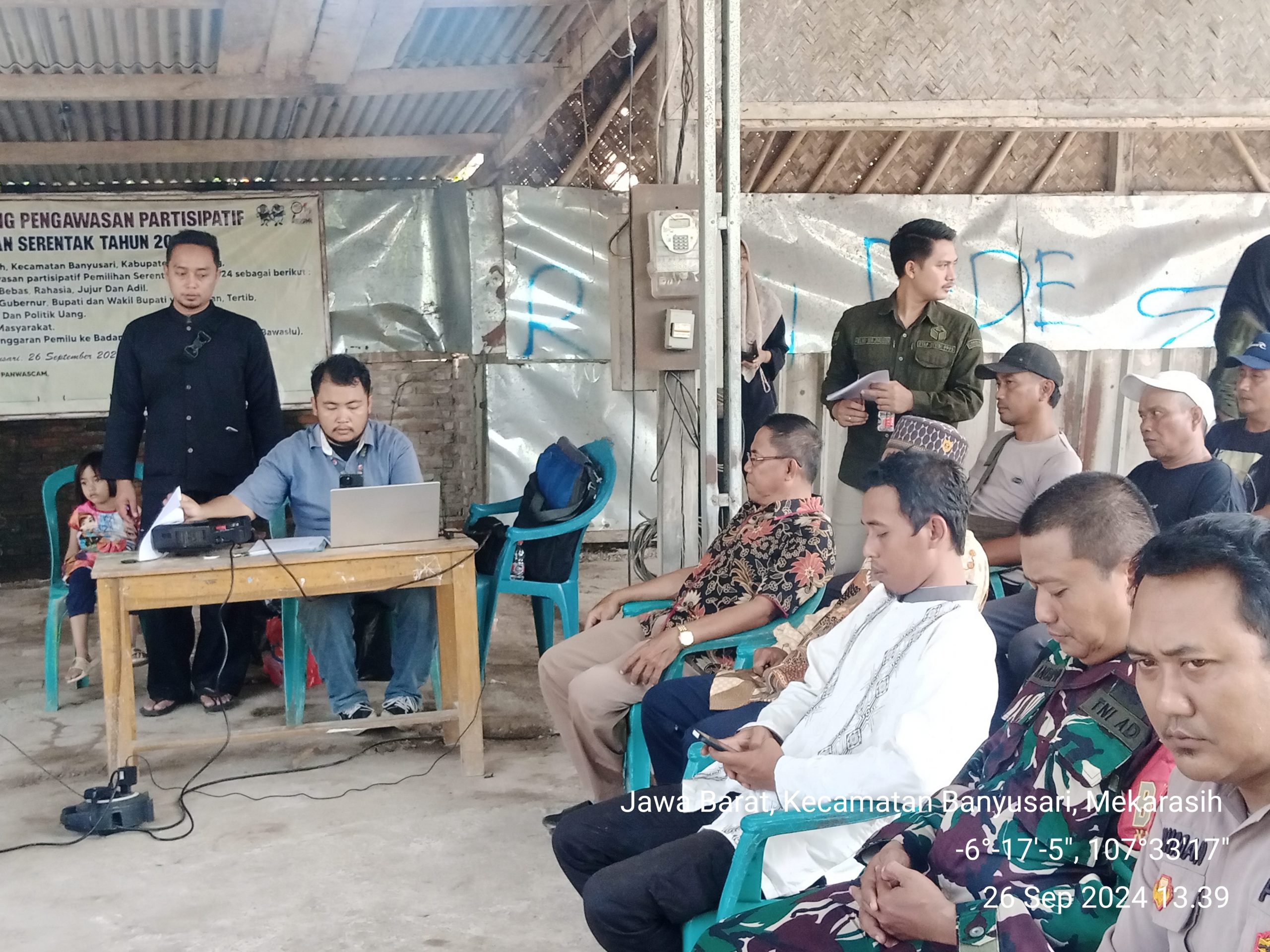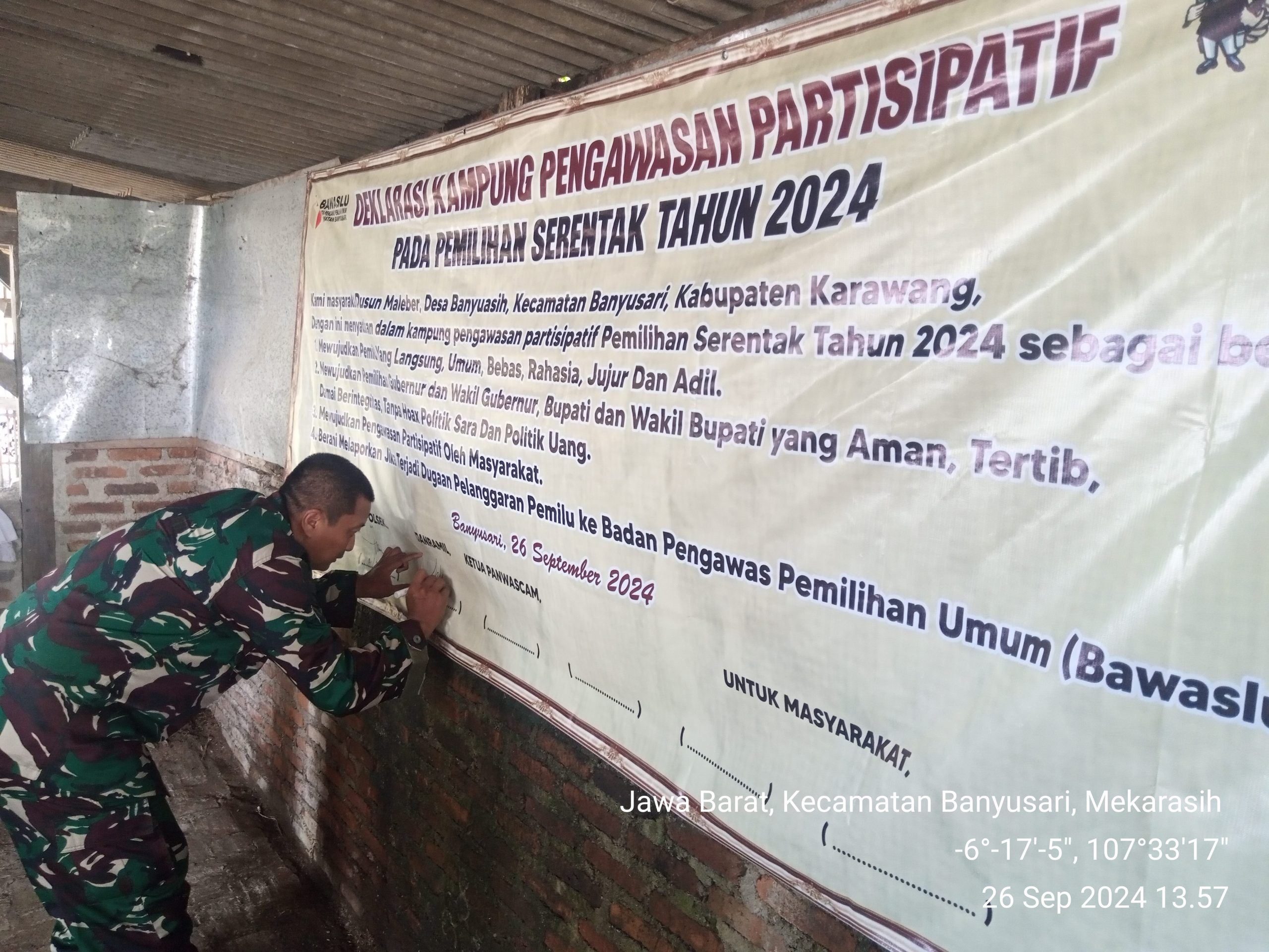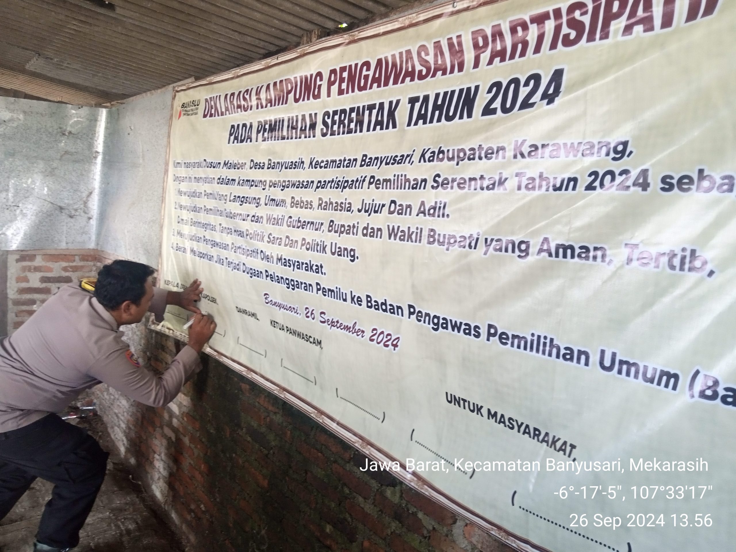 KARAWANG | Panwascam Kecamatan Banyusari Kabupaten Karawang laksanakan kegiatan Deklarasi Kampung Pengawasan Partisipatif pada Pilkada serentak 2024 yang dilaksanakan dihalaman rumah mantan Kades Banyuasih H.Mahpudin Dusun Maleber Satu Desa Banyuasih pada Kamis 26 September 2024.