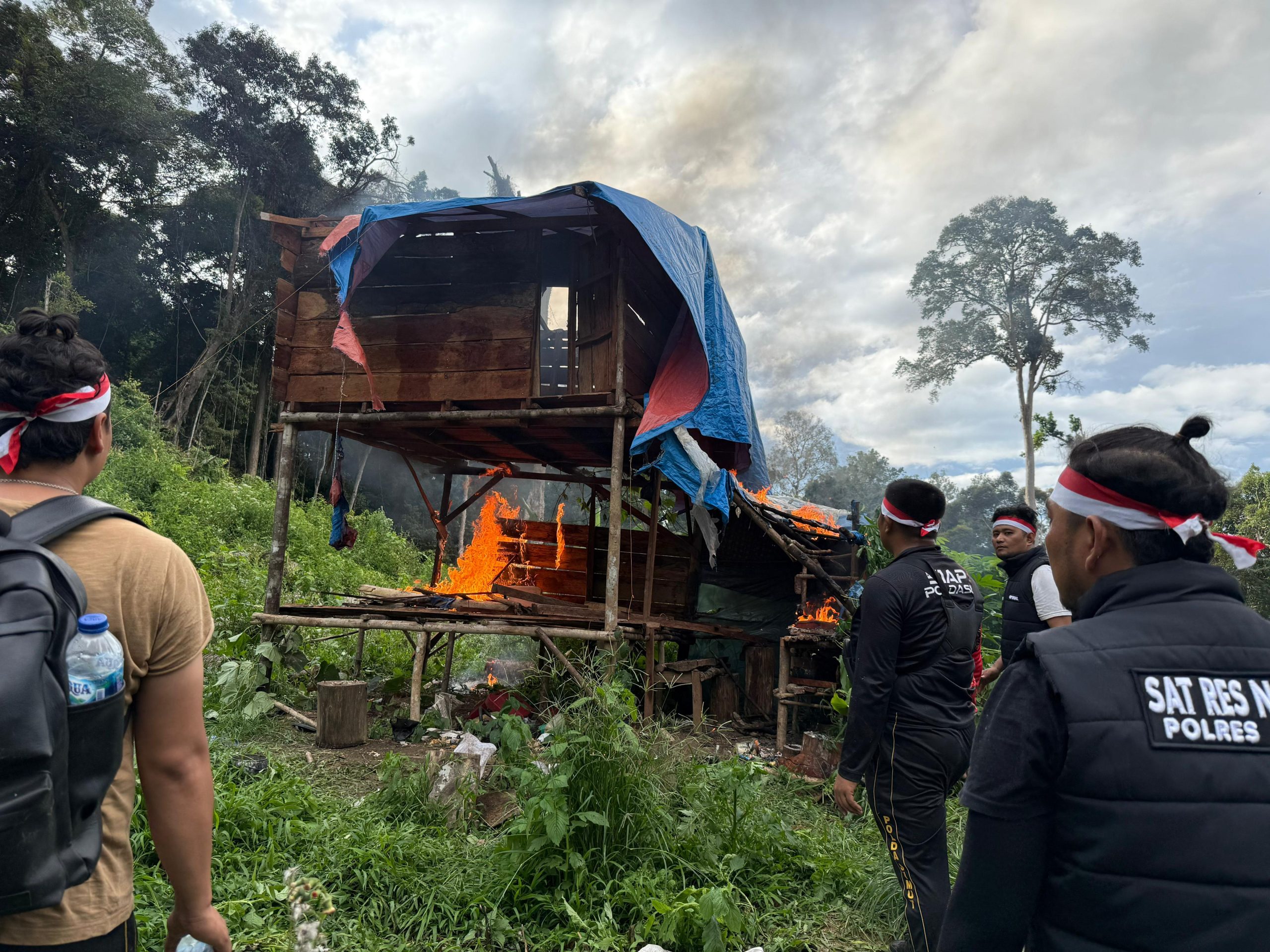 Petugas berhasil menyita 304 batang ganja di lokasi. Petugas melakukan pemusnahan dengan cara membakar tanaman ganja, dan membakar pondok di lokasi milik Manyangah.