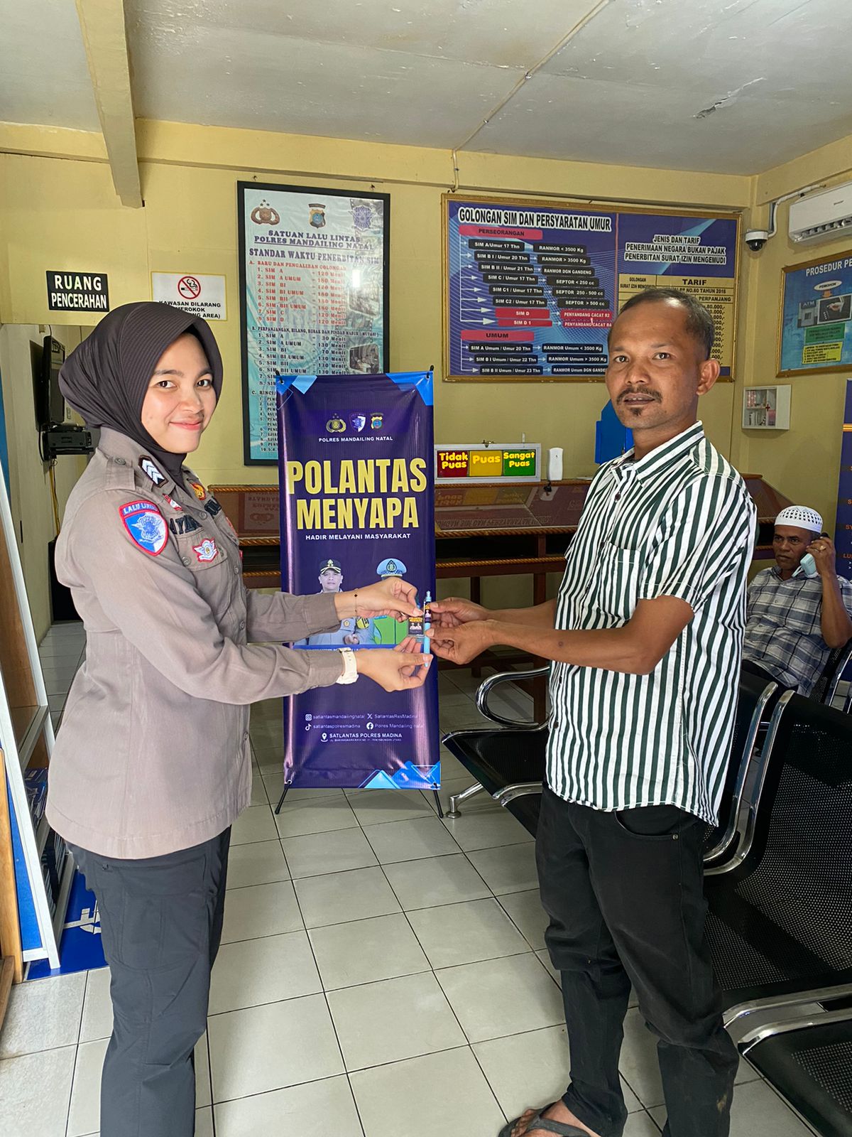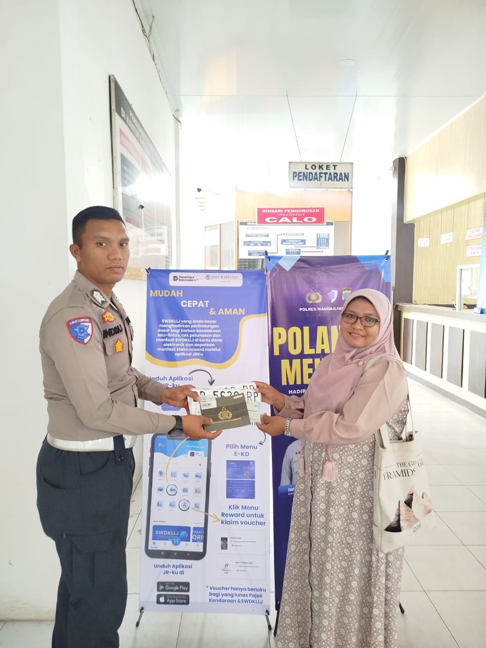 MANDAILING NATAL (HK) – Dalam upaya membangun kepercayaan masyarakat terhadap institusi Polri terutama kepada Satlantas, Kasat Lantas Polres Madina memberikan Reward kepada warga wajib Pajak kendaraan bermotor ataupun Pemilik Kendaraan yang telah melaksanakan kewajibannya baik itu registrasi maupun membayar pajak tahunan Kendaraan, serta melengkapi diri dengan Surat Ijin Mengemudi (SIM).