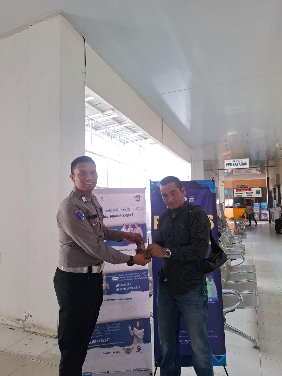 MANDAILING NATAL (HK) – Sebagai pentuk penghargaan kepada Masyarakat yang mematuhi peraturan dalam berlalu lintas terutama warga wajib Pajak kendaraan bermotor ataupun Pemilik Kendaraan yang telah melaksanakan kewajibannya baik itu registrasi maupun membayar pajak tahunan Kendaraan, serta melengkapi diri dengan Surat Ijin Mengemudi (SIM), Satlantas Polres Madina terus memberikan Reward kepada masyarakat berupa pemberian Sovenir mainan kunci dan pulpen kepada masyarakat.