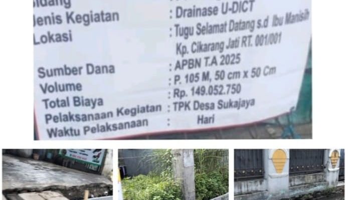 Pembangunan Drainase Rp149 Juta di Desa Sukajaya Bekasi Dikecam, Abaikan Standar K3