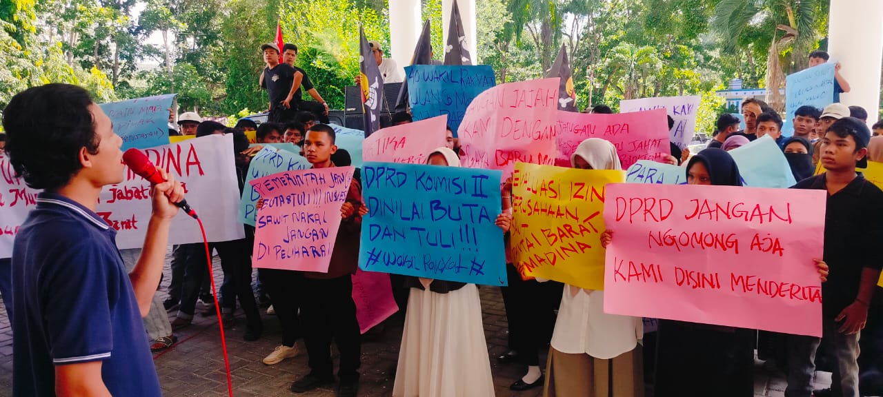 Dalam aksi tersebut, mahasiswa menyoroti banyaknya persoalan di sektor perkebunan wilayah Pantai Barat Madina yang hingga kini belum terselesaikan. Massa aksi datang dengan membawa bendera bergambar One Piece dan dikawal oleh aparat kepolisian.