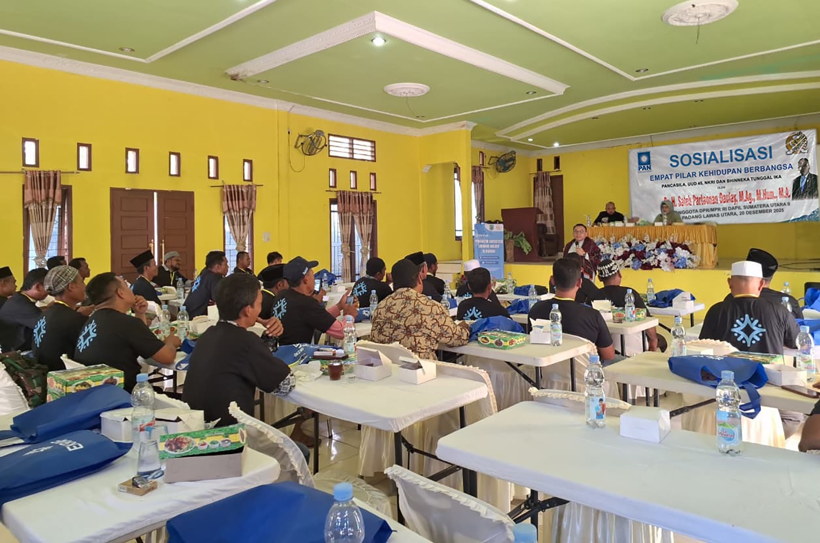 Acara Sosialisasi Empat Pilar Berbangsa dan Bernegara ini dihadiri oleh tokoh masyarakat, pak Lurah dan pengurus DPD PAN Padang Lawas Utara dan anggota lainnya.