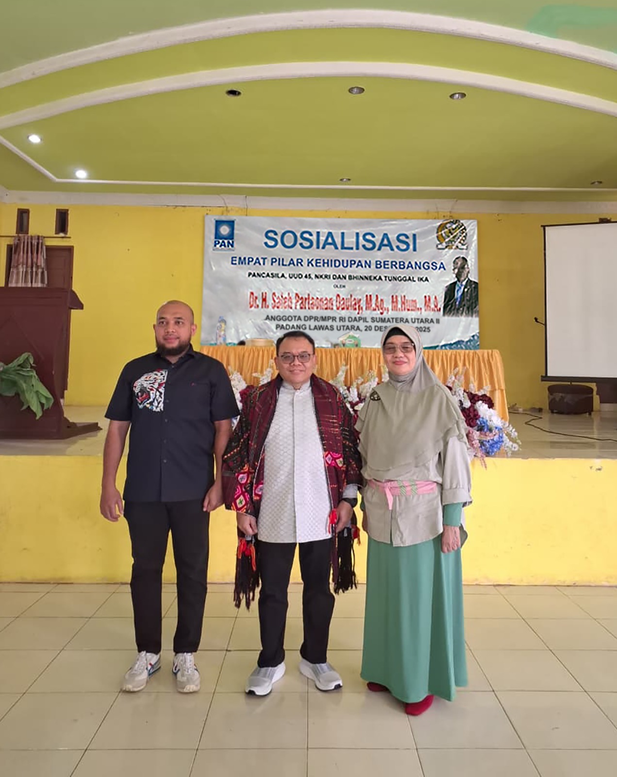 PALUTA (HK) – Empat Pilar Berbangsa dan Bernegara terus di sosialisasikan oleh Anggota DPR/MPR RI DR. Saleh Partaonan Daulay, M.Ag.,M.Hum.,M.A di Kabupaten Padang Lawas Utara dan Kabupaten Padang Lawas, Sabtu (20/12/2025).
