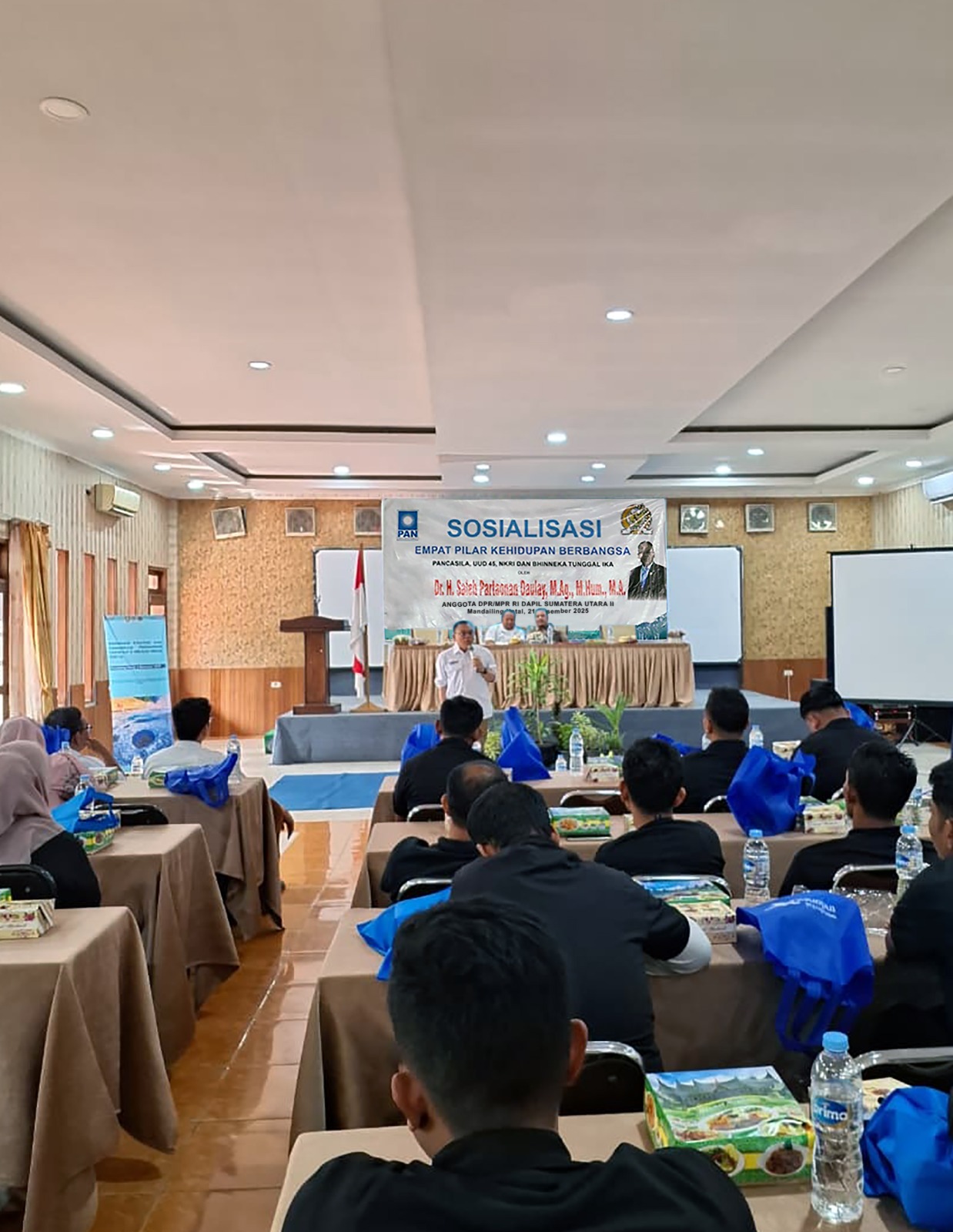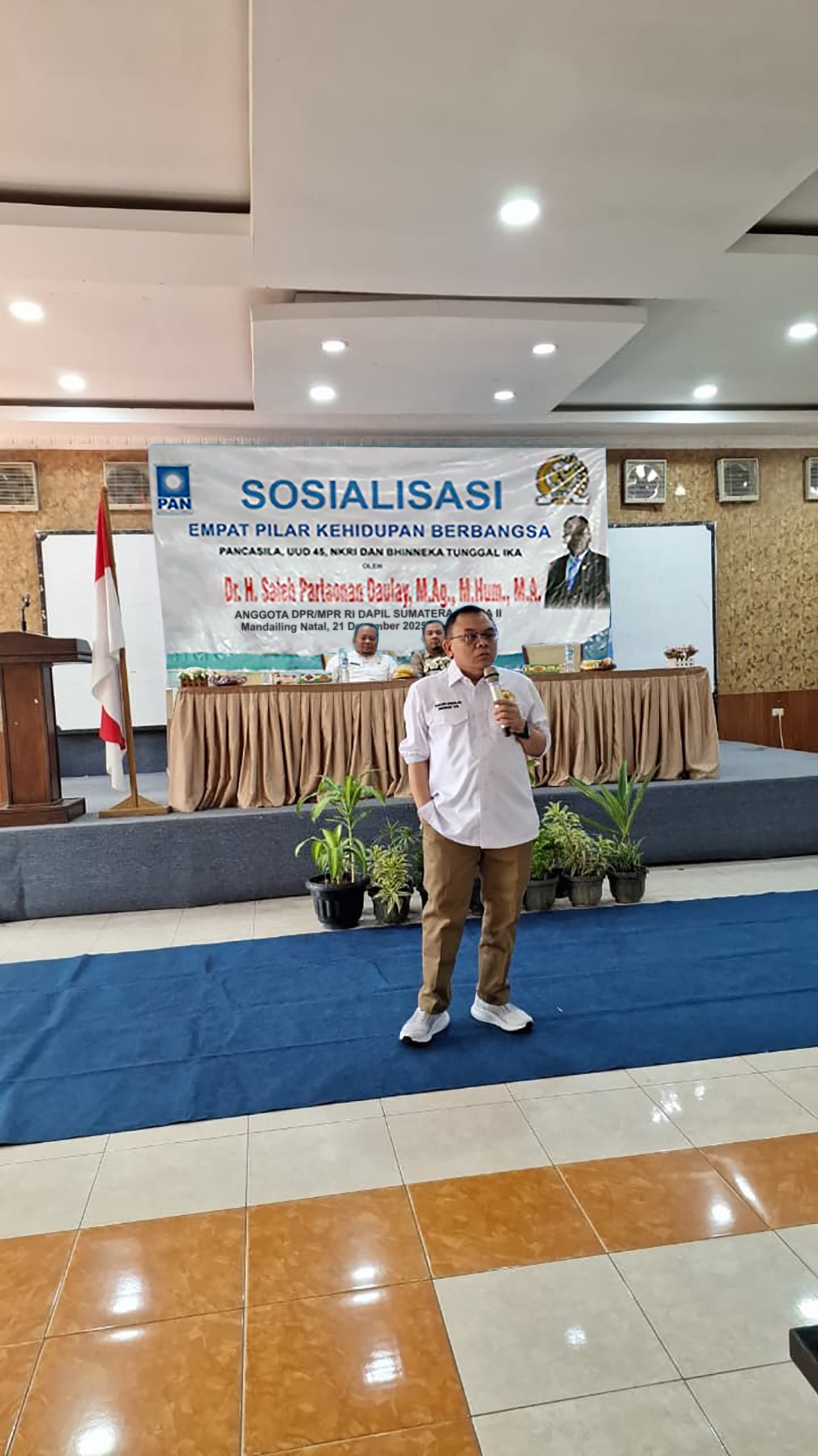 MANDAILING NATAL (HK) – Budaya Gotong Royong perlu di tingkatkan di tengah-tengah Masyarakat, hal tersebut disampaikan oleh Anggota DPR/MPR RI DR. Saleh Partaonan Daulay, M.Ag.,M.Hum.,M.A dalam acara Sosialisasi Empat Pilar Berbangsa dan Bernegara di Hotel Rindang Panyabungan Kabupaten Mandailing Natal, Minggu (21/12/1025) yang dilaksanakan pukul 09.30 hingga 11.30 Wib.