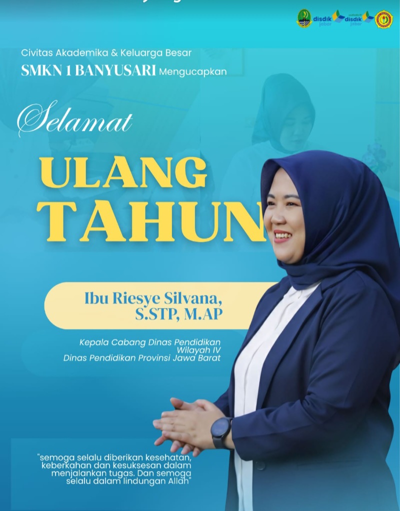 KARAWANG – Civitas akademika dan keluarga besar SMKN Banyusari Kabupaten Karawang menyampaikan ucapan selamat ulang tahun kepada Kepala Cabang Dinas Pendidikan Wilayah IV Dinas Pendidikan Provinsi Jawa Barat, Ibu Riesyse Silvana, S.STP., M.AP.