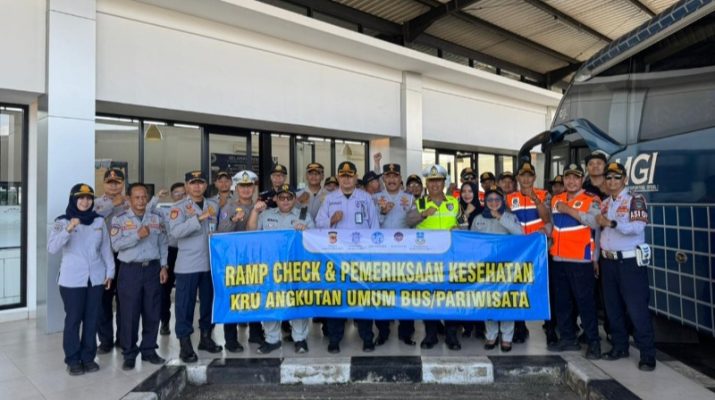 Polres Garut Laksanakan Ramp Check Bus dan Pemeriksaan Kesehatan Kru di Terminal Guntur