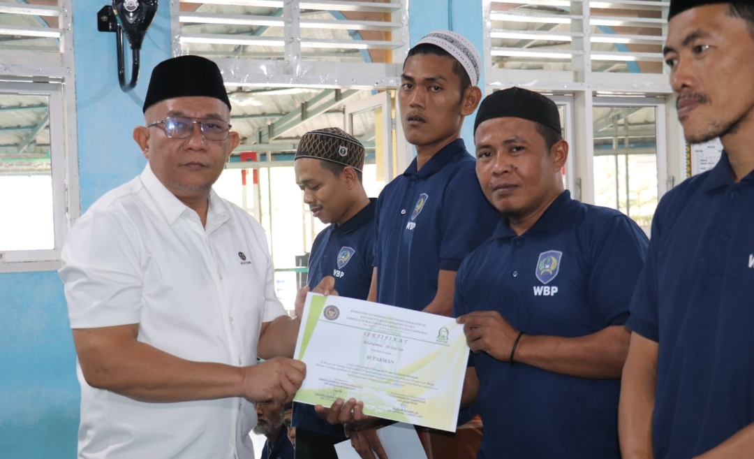 Sertifikat tersebut diserahkan secara langsung oleh Kepala Lapas Rantauprapat bersama Ustaz Adi Sucipto sebagai bentuk apresiasi atas kesungguhan dan komitmen warga binaan dalam mengikuti program pembinaan keagamaan.