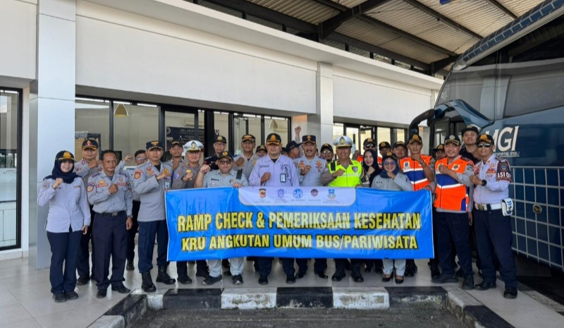 GARUT | Dalam rangka meningkatkan keselamatan dan kenyamanan masyarakat pengguna transportasi umum, Polres Garut melalui Satuan Lalu Lintas melaksanakan kegiatan Ramp Check kendaraan bus angkutan umum serta pemeriksaan kesehatan kru bus/pariwisata di Terminal Guntur Garut, Selasa (10/03/2026).