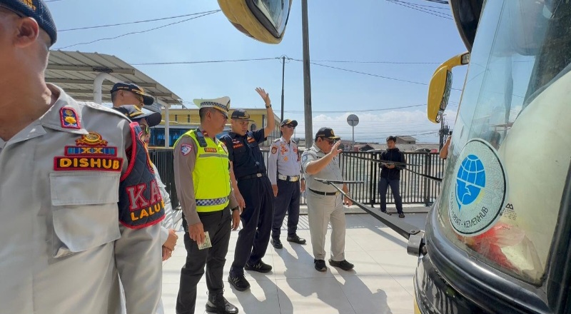 Polres Garut Laksanakan Ramp Check Bus dan Pemeriksaan Kesehatan Kru di Terminal Guntur