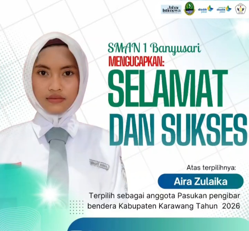 “Kami mengucapkan selamat dan sukses kepada ananda Aira Zulaika atas terpilihnya sebagai anggota Paskibraka Kabupaten Karawang tahun 2026. Ini adalah prestasi yang sangat membanggakan dan menjadi bukti bahwa siswa SMAN 1 Banyusari mampu bersaing dan berprestasi di tingkat kabupaten,” ujar Any Sofyani.