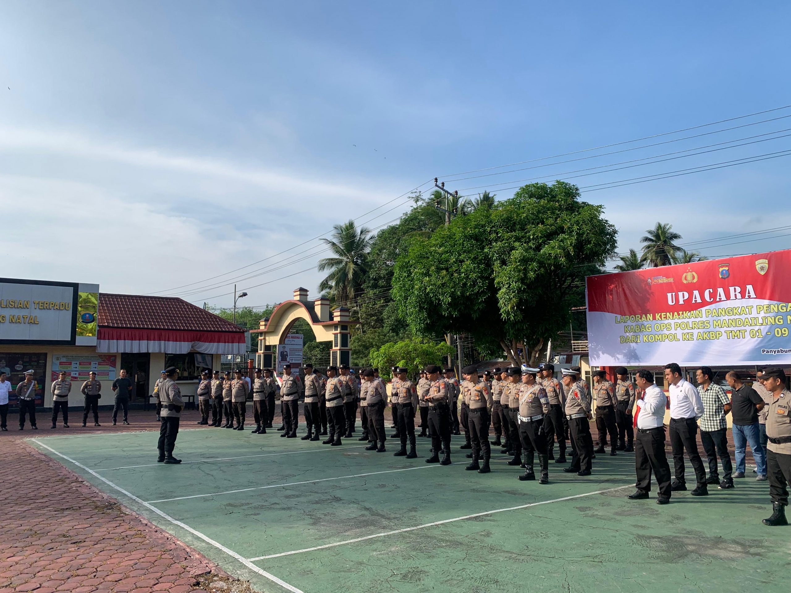 MANDAILING NATAL (HK) – Kabang Ops Polres Madina Muhammad Rusli Terima kenaikan pangkat pengabdian satu tingkat dari Kompol ke AKBP, ditandai dengan upacara korps