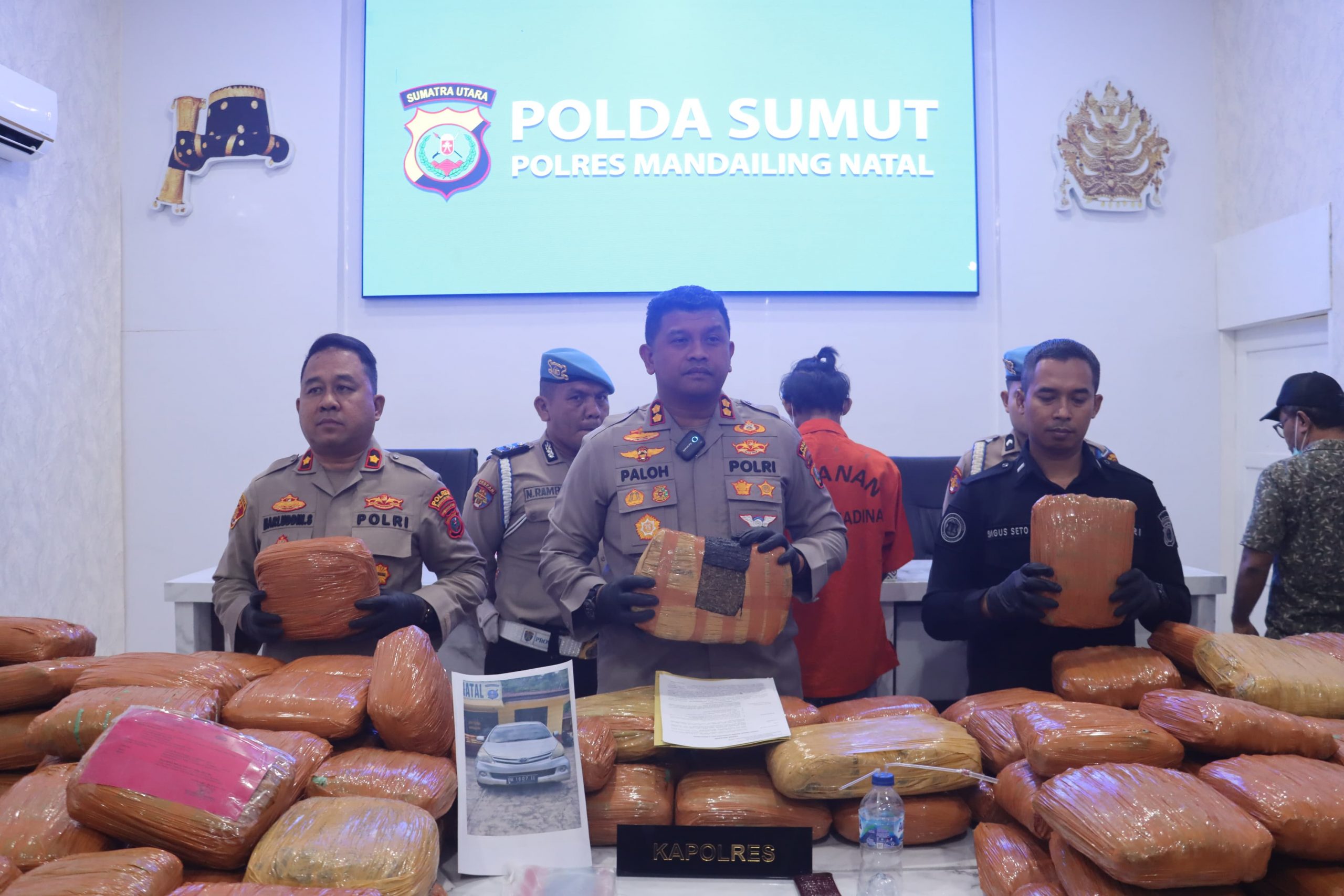 Sumatera Utara, Mandailing Natal – Polres Mandailing Natal (Madina) meringkus dua orang kurir ganja 154 Kilogram di Pasar Muarasoma, Kecamatan Batang Natal, Kamis (8/8/2024).