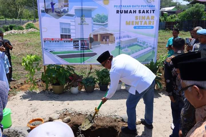 Mandailing Natal, Panyabungan – Bupati Mandailing Natal (Madina) H.M. Ja’far Sukhairi Nasution menghadiri peletakan batu pertama pembangunan Rumah Sakit Sinar Mentari di Aek Galoga