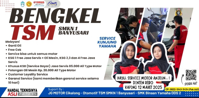 Servis Motormu Tanggal 12 Maret 2025 di Bengkel Motor SMKN 1 Banyusari Karawang KARAWANG || Bekerjasama dengan JG Motor Cikalong (main dealer sepeda motor