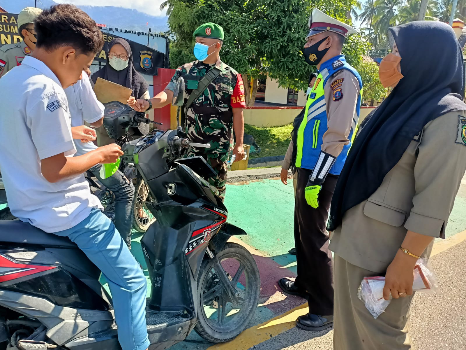 MANDAILING NATAL (HK) – Dalam rangka untuk terus mengantisipasi dan mencegah penularan Covid-19, Babinsa Koramil 13/Panyabungan Kodim 0212/Tapsel Serda AJ. Zega bersama Bhabinkamtibmas dan