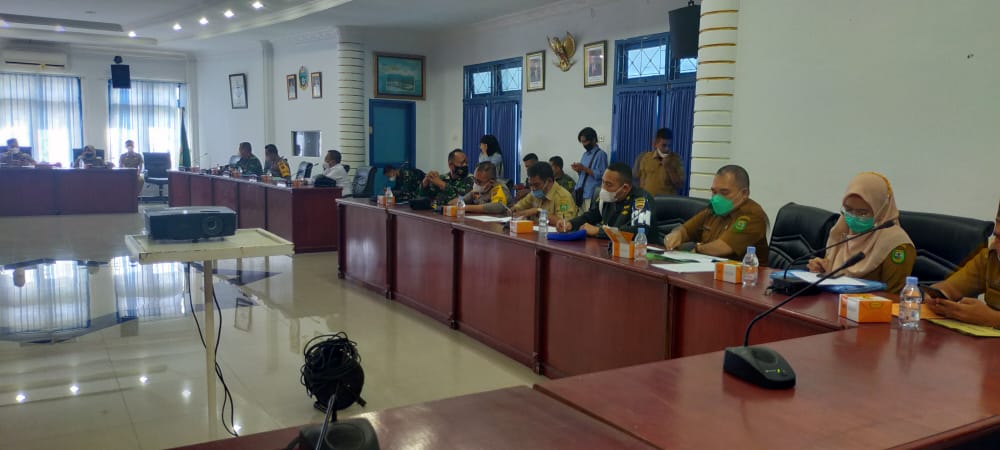 Dandim 0212/Tapsel Bersama Forkopimda Rapat Evaluasi Perkembangan Covid-19 Kab. Madina