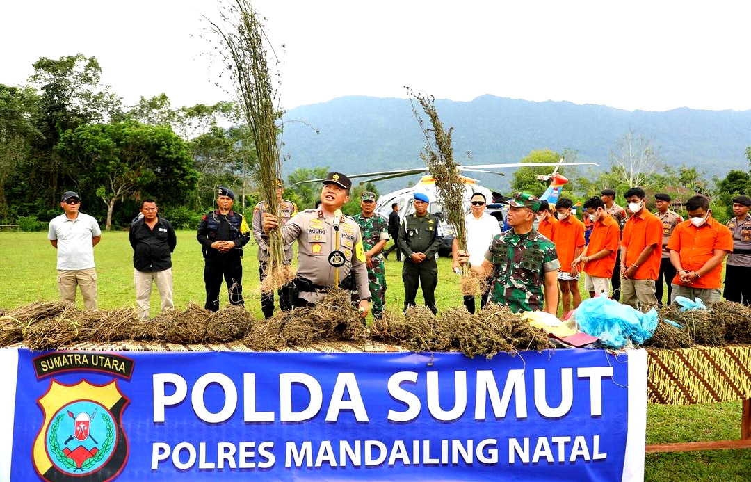 Ket.Gambar : Kapoldasu dan Pangdam I/BB Saat Memimpin Operasi Perburuan Ladang Ganja. Madina – Kapolda Sumut pimpin operasi pemberantasan ladang ganja terbesar di wilayah
