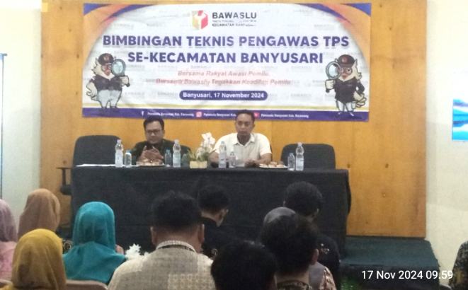 Panwaslu Kecamatan Banyusari Gelar Bimtek Pengawas TPS, Fokus Pada P2S KARAWANG | Pada tanggal 17 Nopember 2024, Panitia Pengawas Pemilihan Umum (Panwasu) Kecamatan Banyusari