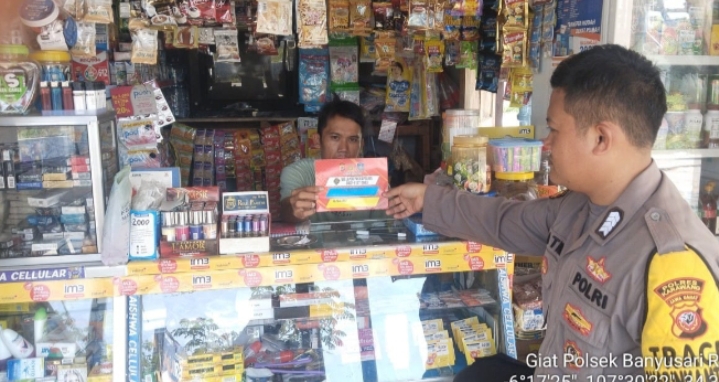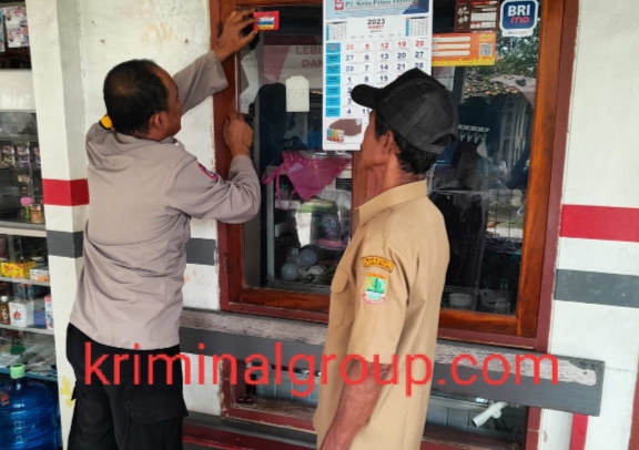 Polisi CAKET Polsek Banyusari Pasang Stiker Lapor Kapolres di Rumah Warga