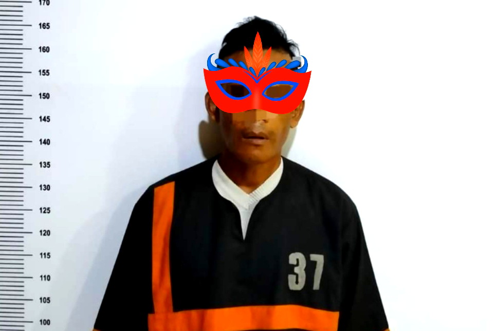 Ket.Gambar : Terduga Pelaku Saat Diamankan Unit Reskrim Polsek Aek Natas Labura – Seorang pria RYT (31) alias Uci tak berkutik saat Unit Reskrim