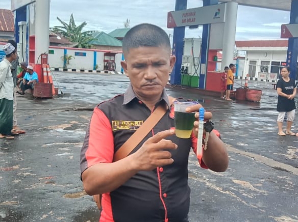 Ngisi Minyak diduga Bercampur Air di SPBU Muara Nibung
